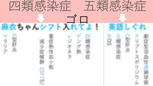 四類感染症は「麻衣ちゃんシフト入れてよ!」五類感染症は「英語しぐれ」三類感染症は薬学ゴロさんの「ぽっちゃり系じーさま恋に泣く」がとても覚えやすいです!