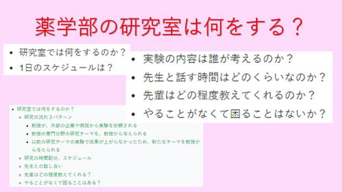 どこの研究室に入るか迷っている… 悩む理由として、 研究室では何をするのか? 1日のスケジュールは? など、イメージがつかないのではないでしょうか。 私も、配属される前までは、 実験の内容は誰が考えるのか? 先生と話す時間はどのくらいなのか? 先輩…