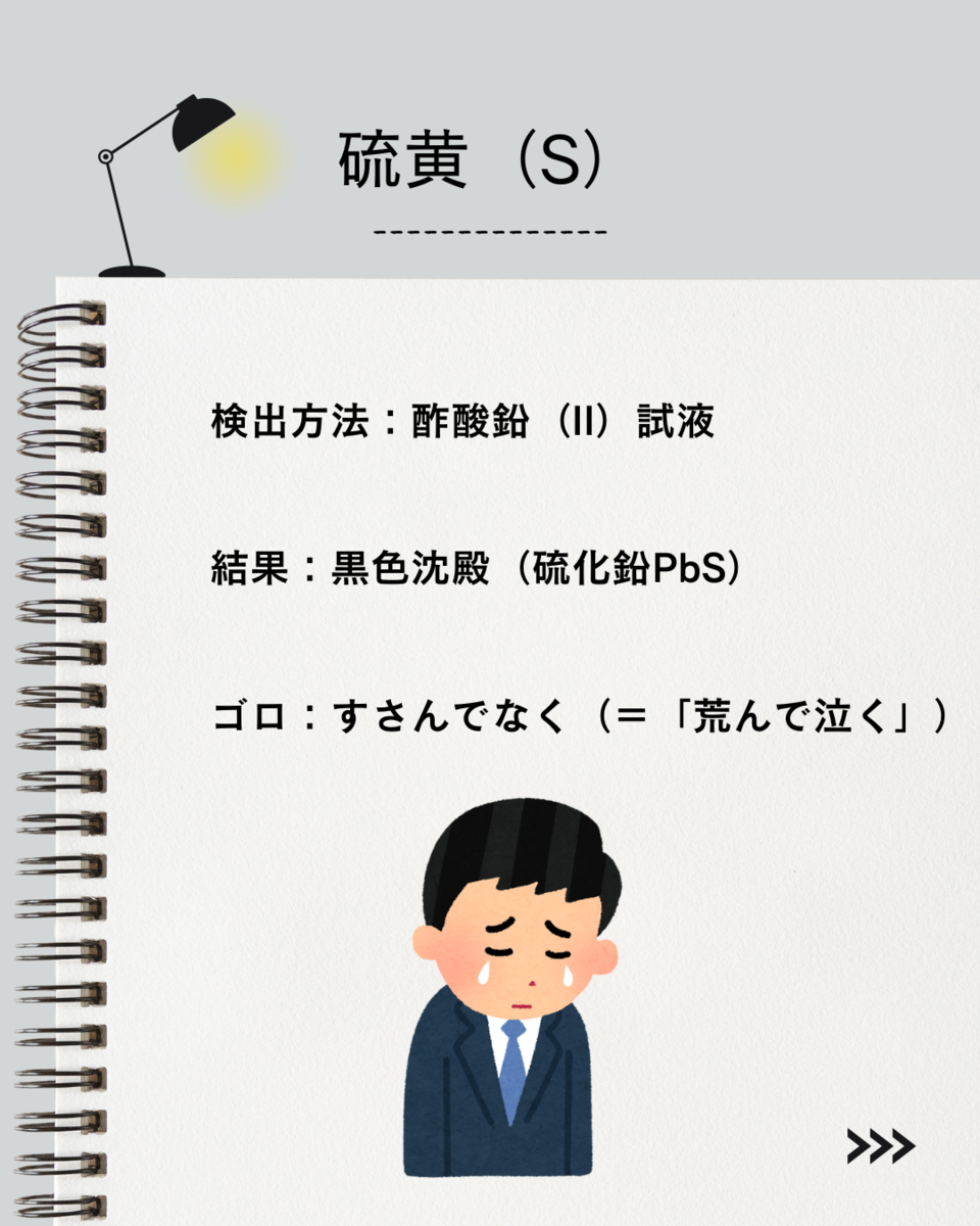 今回は、無機イオンの定性反応をゴロ合わせで覚える方法を紹介しました。